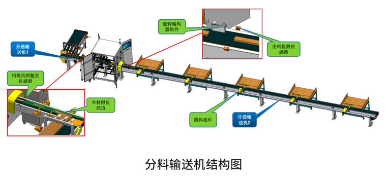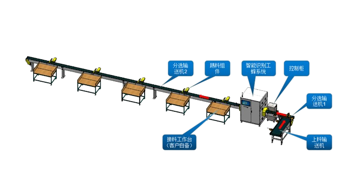 木材原料分揀(分級分色)工作站用于木材加工行業(yè)對于木材的篩選分類;基于木材表面缺陷進(jìn)行數(shù)據(jù)建模,融合數(shù)據(jù)庫、前端可視化、后端服務(wù)、機(jī)器視覺、AI大模型、神經(jīng)網(wǎng)絡(luò)算法、數(shù)據(jù)挖掘等多種技術(shù)對木材的缺陷進(jìn)行精準(zhǔn)識別,結(jié)合企業(yè)工藝標(biāo)準(zhǔn)得到木材等級,配合PLC進(jìn)行邏輯控制,輔以高速氣缸進(jìn)行踢料,從而為木材原料分級分色。